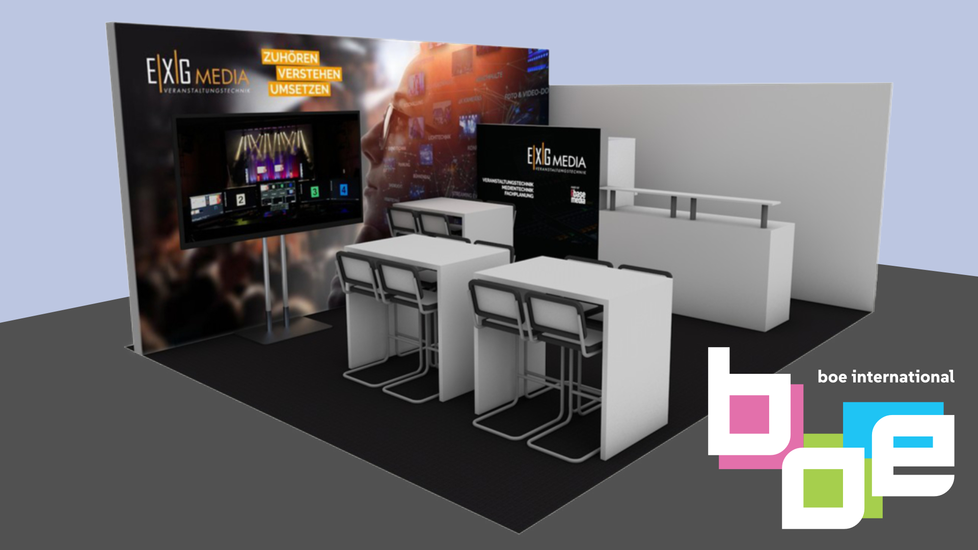 Zusätzlich wurde ein Catering-Unternehmen beauftragt, das eine mobile Thekenlösung bereitstellte. Diese ermöglichte während des laufenden Messebetriebs einen zügigen Aufbau und bot eine breite Auswahl an Getränken.